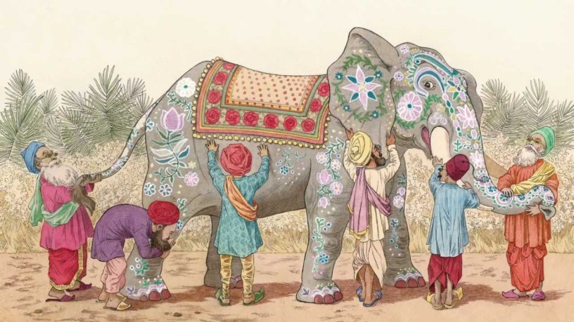 “Aquelas para as quais havia sido mostrada a parte traseira do elefante responderam, ‘O elefante, majestade, é igual a uma argamassa.’